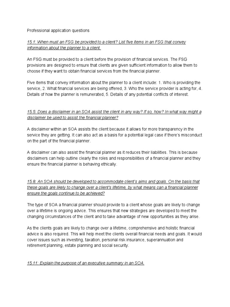 Answering client questions about financial plans and strategies and giving financial advice. The professional must guide investment decisions, cash management, and day to day expenses. Predict revenues and provide reasons in case of discrepancies. Their job description entails proffering expert advice on personal budgeting, debt management, investment, insurance choices, and various other financial subjects. They may specialize in one of these fields.